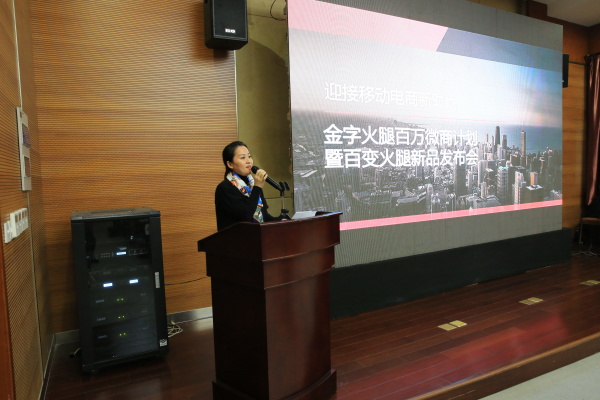 發(fā)布會(huì)上,金字火腿總經(jīng)理吳月肖與現(xiàn)場領(lǐng)導(dǎo)、嘉賓分享了金字火腿這些年在互聯(lián)網(wǎng)電商領(lǐng)域探索和前進(jìn)的步伐。有專家說2015是微商崛起元年,移動(dòng)電商全面爆發(fā)之年。從一組數(shù)據(jù)便可看出端倪:中國第三方移動(dòng)支付市場交易規(guī)模從2014年的59924.7億元 到2015年僅第2季度34746億元人民幣的驚人增長,剛剛結(jié)束的天貓雙十一狂歡節(jié),一天的成交額就達(dá)到912億,其中移動(dòng)端交易額626億元,占比為68%。