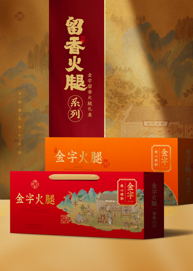將火腿美食文化演繹出新國(guó)潮,“興于宋”的文化感、“宋之美”的價(jià)值感、“宋之韻”的精致感,煥新系列包裝最終呈現(xiàn)“宋”之有禮的全新理念。