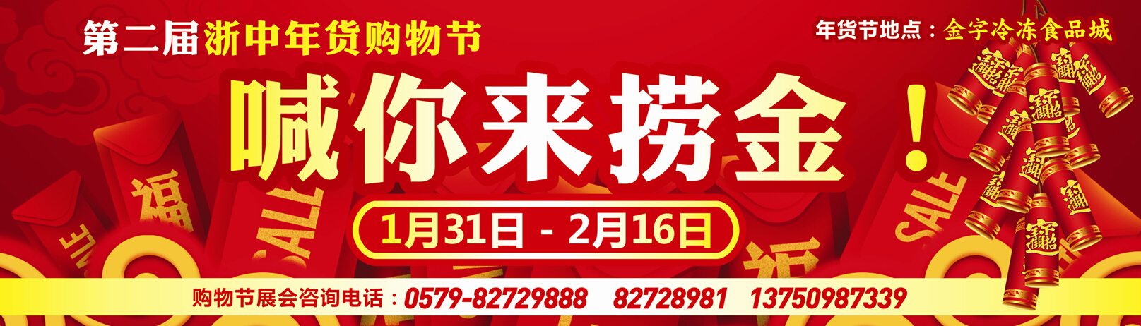 2015年1月31日,第二屆浙中年貨購(gòu)物節(jié)即將在金字冷凍食品城再次上演年貨盛宴,也許錯(cuò)過(guò)了去年的購(gòu)物節(jié)狂歡,也許錯(cuò)過(guò)了年末撈金的絕佳時(shí)機(jī),而這一次,怎能再次錯(cuò)過(guò)覆蓋金麗衢20多縣市1000萬(wàn)人口的年貨盛會(huì)呢?