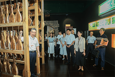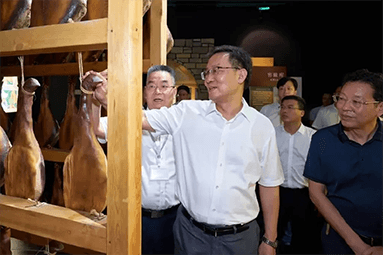 8月22日,金華市委書記朱重烈專程赴金字火腿公司調(diào)研金華火腿產(chǎn)業(yè)振興工作。朱書記在公司領(lǐng)導(dǎo)周國華、馬曉鐘、吳月肖陪同下,走進火腿文化展示館和產(chǎn)品展廳。
