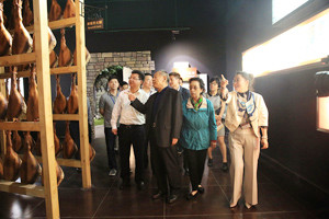 6月28日下午,省人大常委會(huì)副主任馮明一行在金華市人大常委會(huì)副主任陳志身等的陪同下,參觀考察了建于金字火腿內(nèi)的中國(guó)火腿博覽館和世界火腿博覽館,了解金華火腿的行業(yè)發(fā)展現(xiàn)狀。 金字火腿總經(jīng)理吳月肖向馮明一行介紹了金華火腿的歷史文化、傳統(tǒng)制作工藝、營(yíng)養(yǎng)價(jià)值和儲(chǔ)存食用方法。馮明指出,金華火腿雖然是一個(gè)傳統(tǒng)行業(yè),但也要跟上形勢(shì),通過各種渠道進(jìn)行推廣傳播,她特別強(qiáng)調(diào)了互聯(lián)網(wǎng)營(yíng)銷在當(dāng)代企業(yè)發(fā)展中的作用,十分關(guān)心企業(yè)在這一方面的發(fā)展……